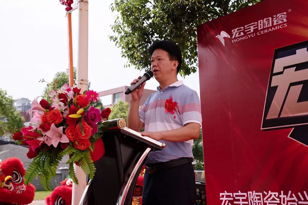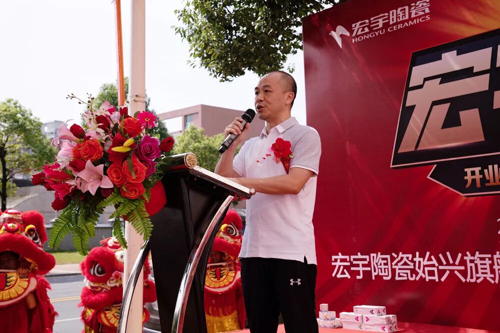 △ 宏宇事業部佛山分公司大區總監邱新華表示,始興宏宇旗艦店盛大開業,標志著宏宇陶瓷在始興市場的一個新起點。相信在宏宇團隊的努力下,始興宏宇陶瓷必將給消費者提供更優質的服務。
