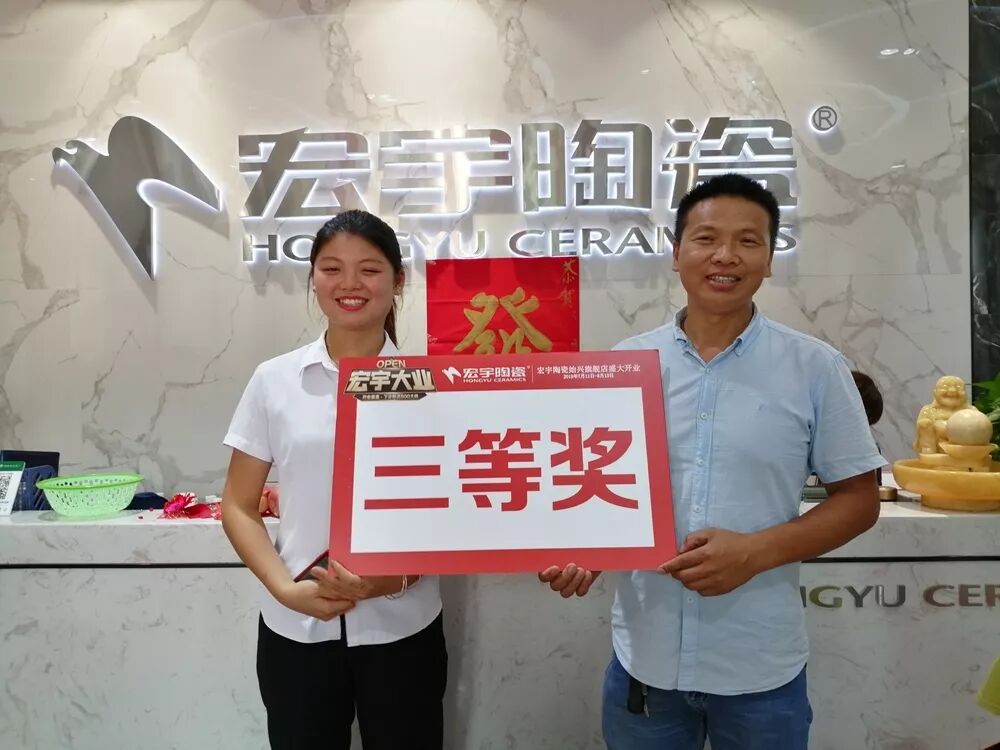 △ 廣東始興宏宇旗艦店總經理鄧獻旺表示,始興宏宇陶瓷將始終以誠信經營為宗旨,以高質服務為基礎,讓消費者用上“老百姓買得起的好瓷磚”!