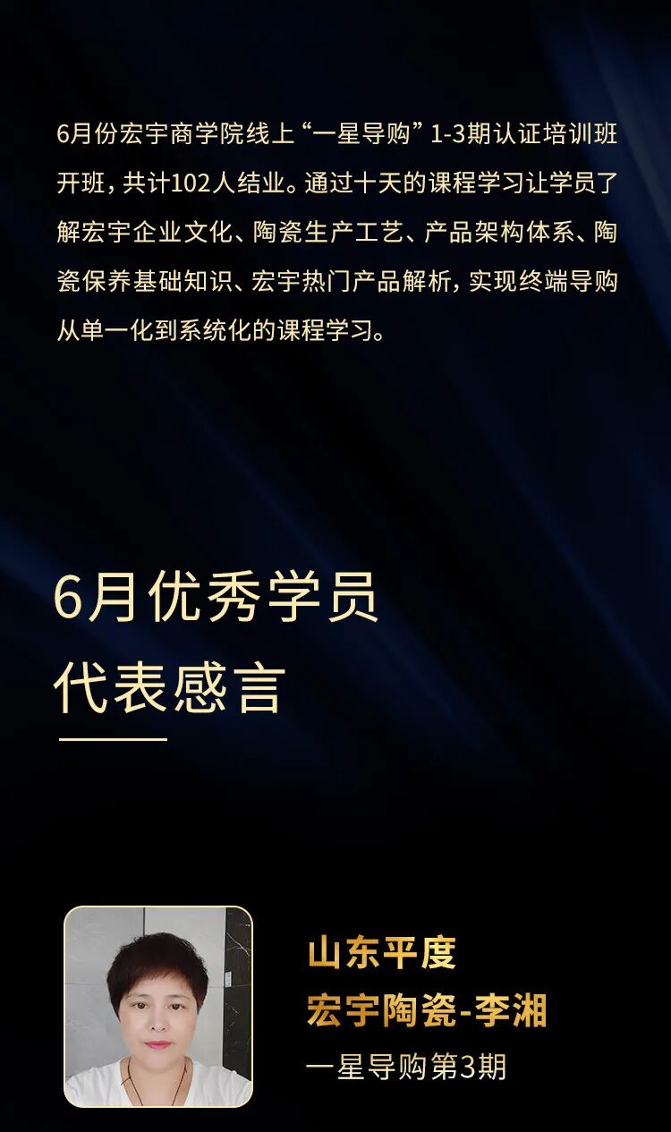 宏宇陶瓷星級導購權威崗位認證通道助你成為業務達人。