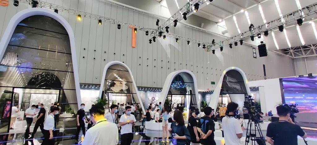 展館中央的球體代表宇宙,球體內部以象征生命之源且散發科技光芒的“水柱矩陣”作為視覺焦點,接天連地,天人合一,以水的科技之相,海納百川于無形,詮釋著宏宇包容多元的深邃智慧與超越時代高度的遠見。720度球幕高科技體驗空間,成為全場熱門的宇宙空間站打卡點;精彩酷炫的產品演藝秀和Live音樂秀、精致唯美的分子料理秀,如同一場時空交織的狂想盛宴,讓您盡情暢玩宇宙星河。
