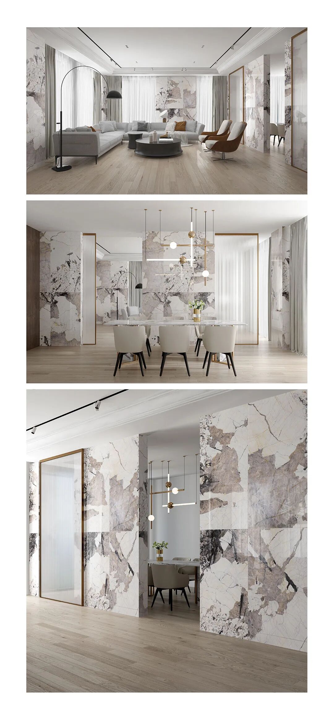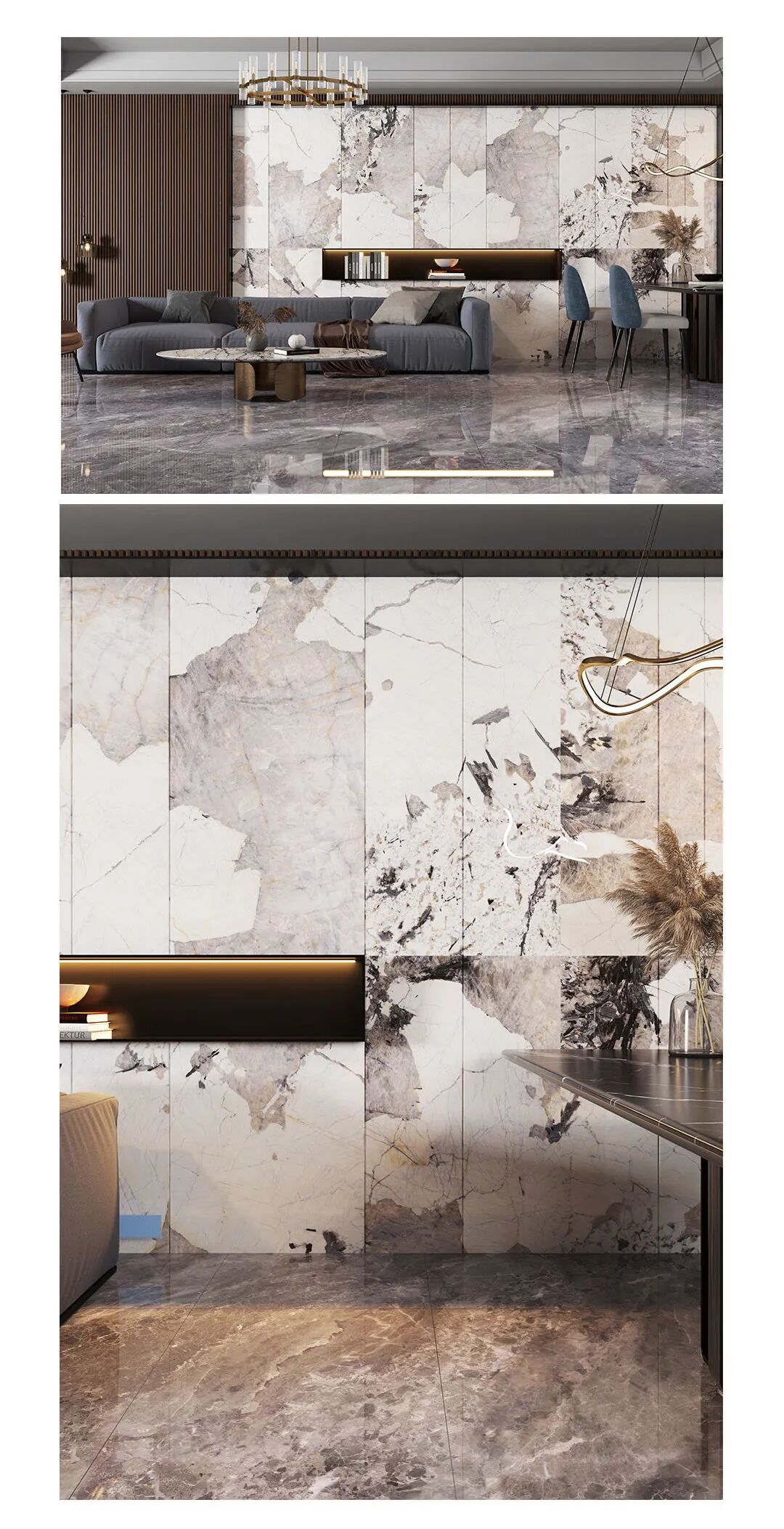 珍稀紋理的暮雪蘭帶來了富有沖擊力的視覺觀感,用于背景墻上延綿的肌理看起來就像一幅完整的潑墨畫,把大自然的壯闊美景搬進家,為家定下了舒緩、寧靜的主調,很好的詮釋出了優雅輕奢的意味。